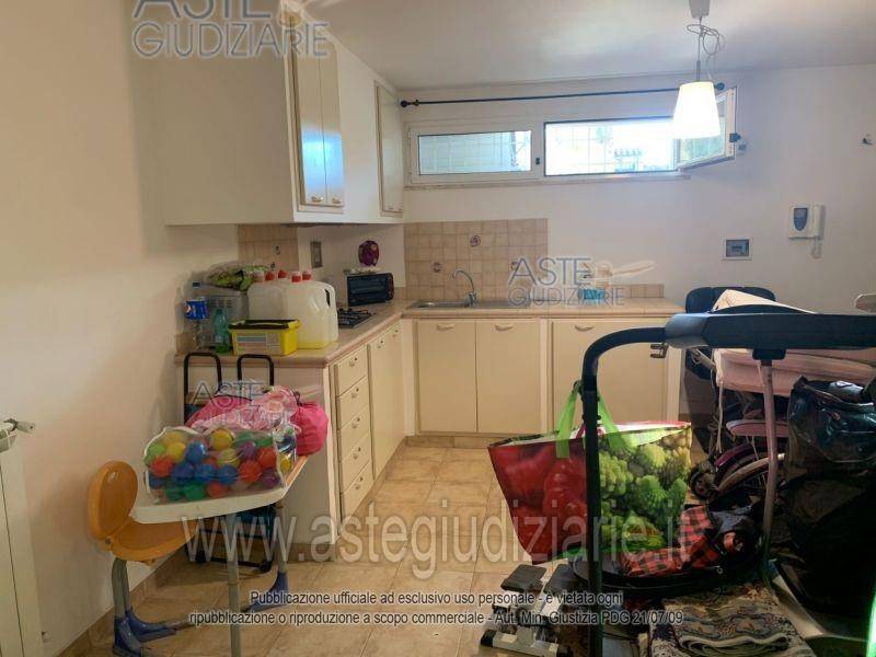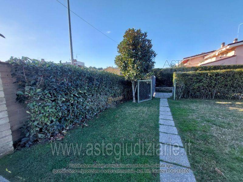 Piena proprietà di porzione di villino trifamiliare con corte esterna sito in Roma (RM), loc. Infernetto, Via Alessio Olivieri n. 114, piani seminterrato, terra e primo, int. A, e di box auto con accesso carrabile al civico n. 116, piano S1, interno 1. La porzione di villino, distribuita su tre livelli collegati da scala interna, è composta al piano terra da giardino, due portici, soggiorno, cucina, disimpegno, bagno e camera; al piano primo (urbanisticamente e catastalmente sottotetto/stenditoio - soffitta) da due disimpegni, tre camere e un bagno; ed al piano seminterrato (urbanisticamente e catastalmente cantina/garage) da soggiorno con angolo cottura, disimpegno, bagno e camera/toiletteria, per una superficie convenzionale complessiva di mq 175,50 circa.l'immobile si può visionare internamente, previo appuntamento con il tribunale.